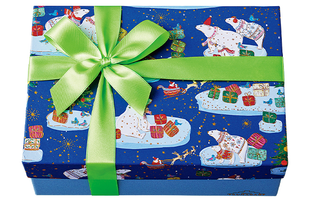 サンタの出発を見守るシロクマたちのボックスを開けると、チョコやナッツ、チーズなど素材のおいしさあふれるクッキーがずらり!