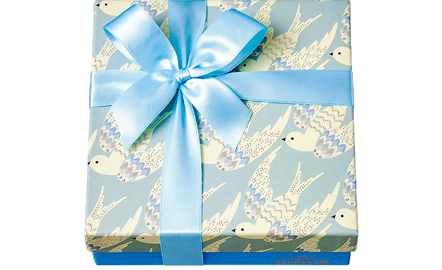 人気のバタークッキーやイルガチェフェコーヒーが香るクッキーなど、10種類を詰め合わせました。青空を飛ぶ鳥のボックスで。