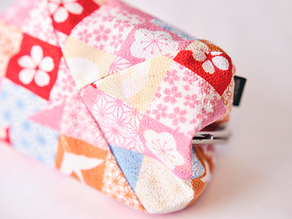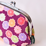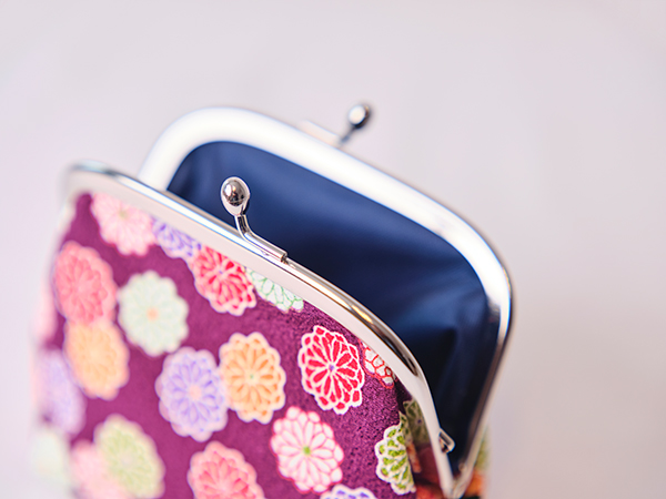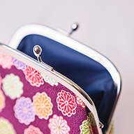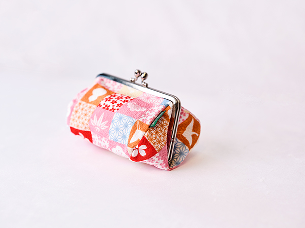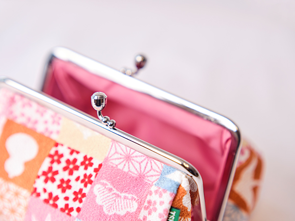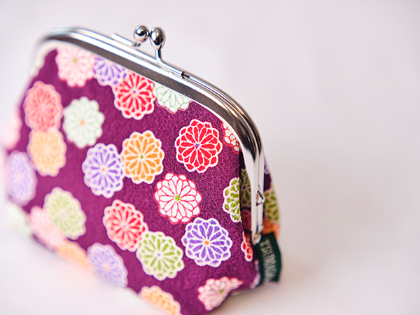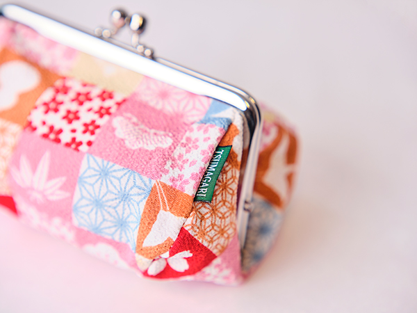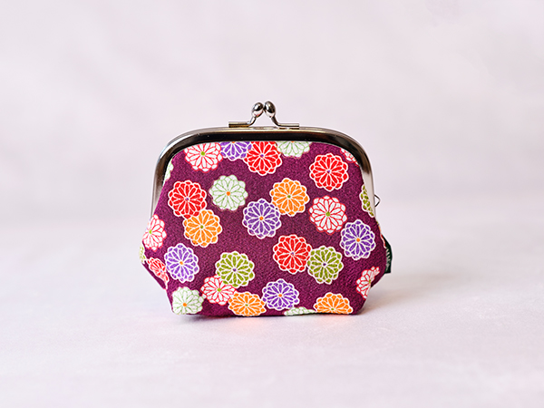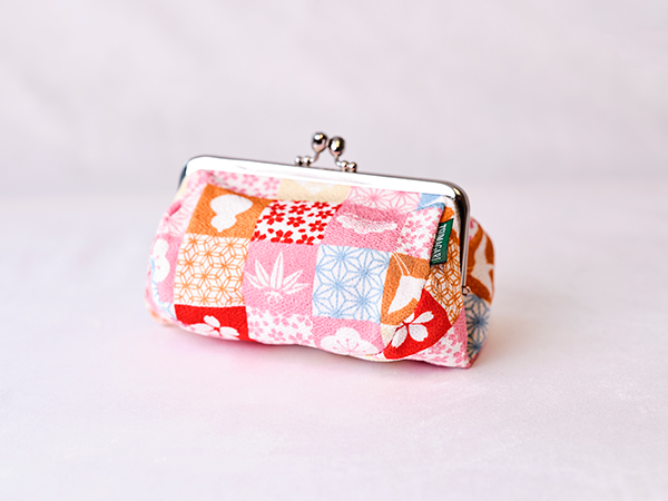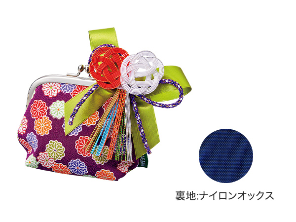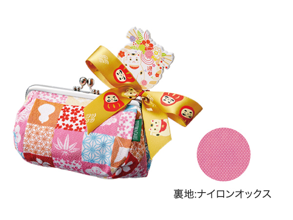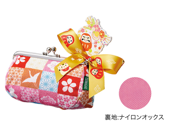 ちりめんのがま口ポーチに、迎春オーナメントを添えて。