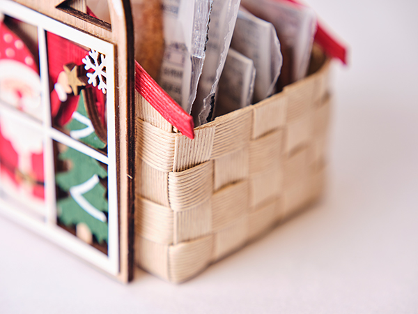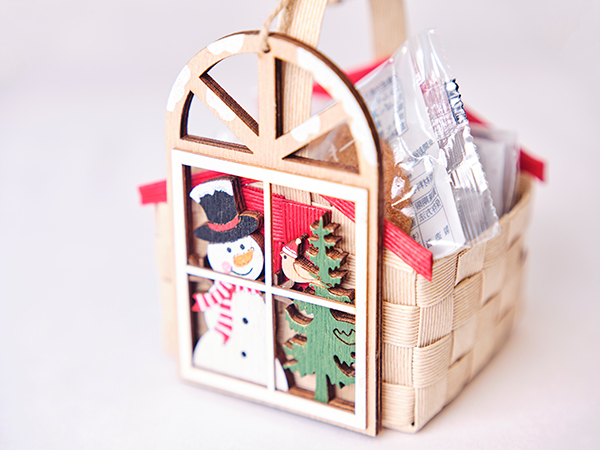 ギフトバッグはスイス・Stewo社のペーパーを使用。聖歌隊がかわいい木のオーナメントはドイツ製。