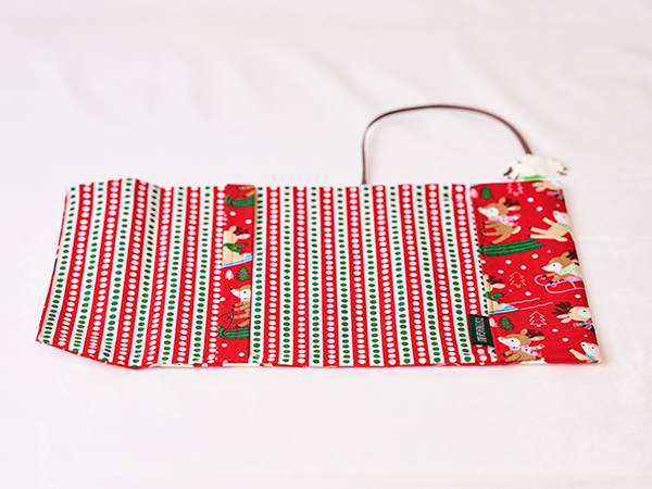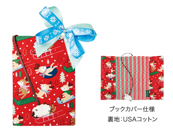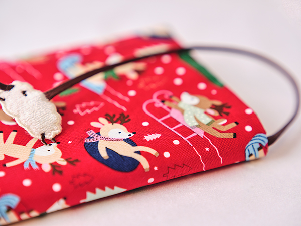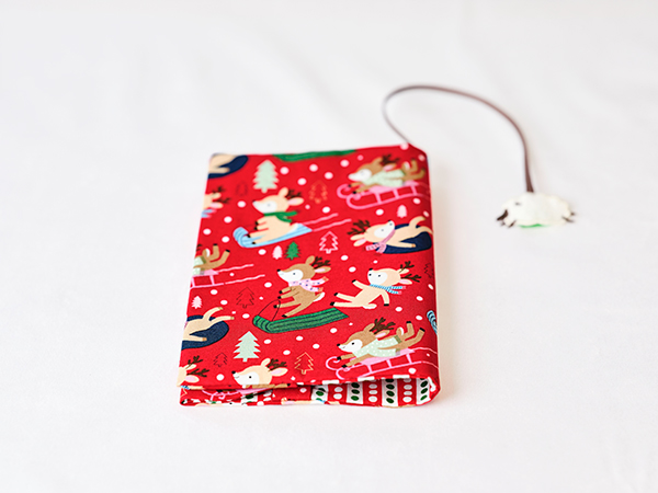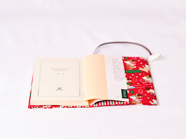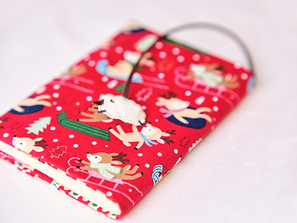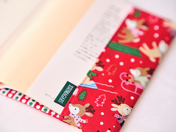 トナカイ柄のブックカバー。オリジナル刺繍を施したしおり付き。