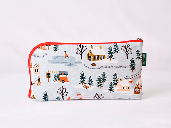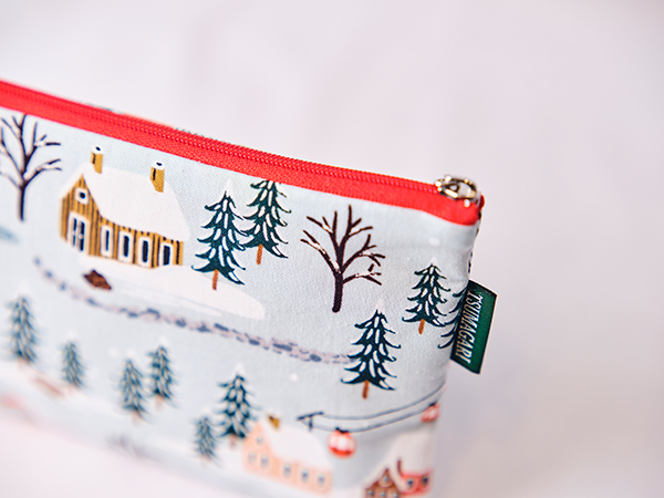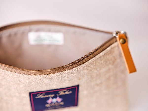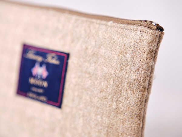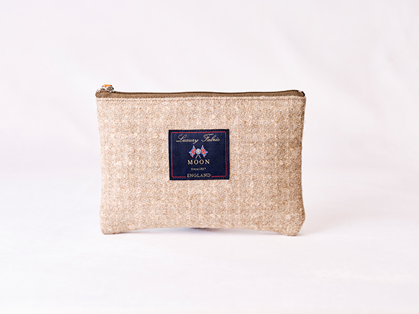 英国の老舗生地メーカーMOON社の伝統的なツイードで仕立てた、あたたかな風合いのファスナーポーチ。