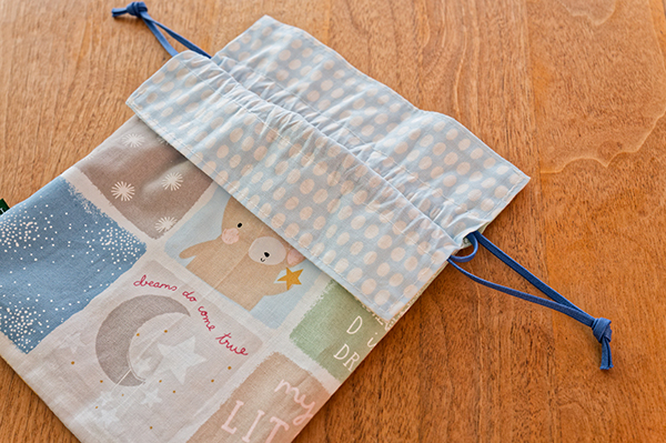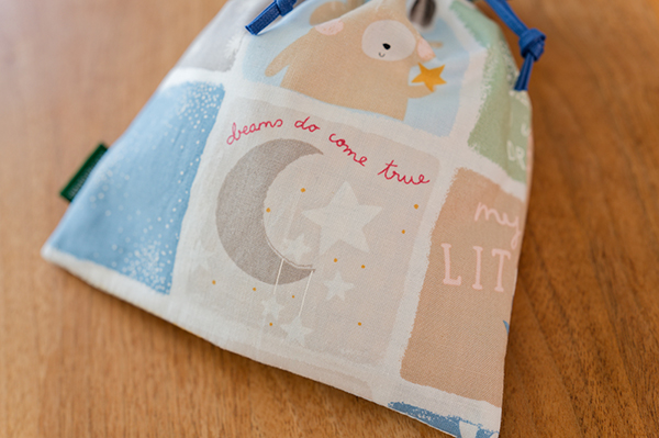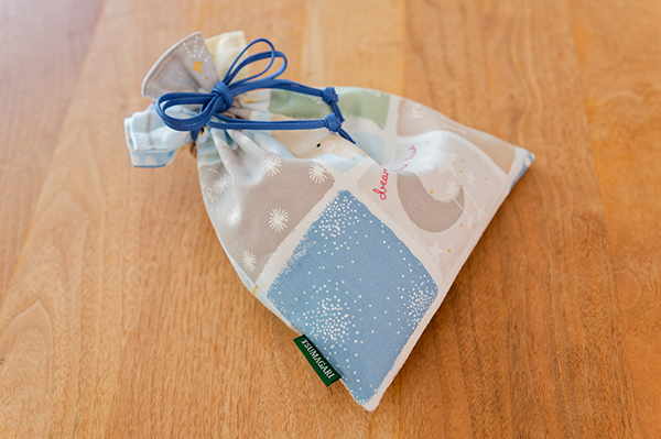 水玉模様の裏地もお気に入り。いろいろ使える巾着袋。