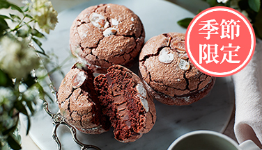 ココア風味の独特なふんわり生地に、ガナッシュとプラリネをサンド。